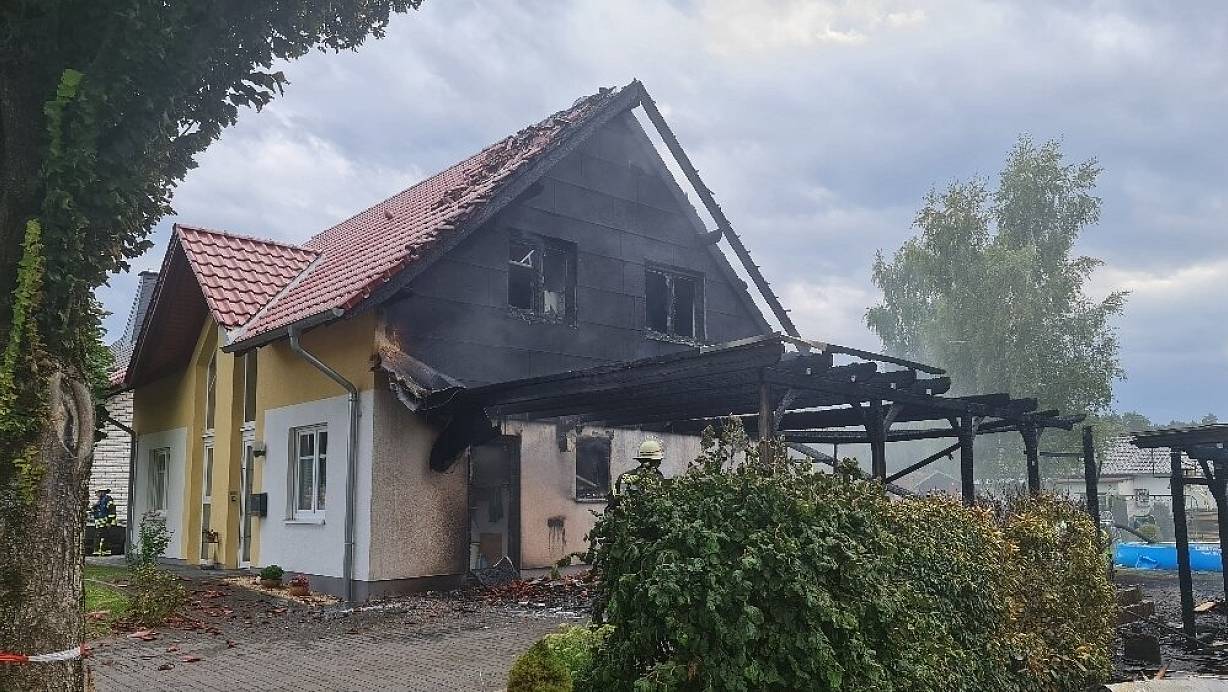 Ein Carport war am Montagnachmittag in Schloß Holte-Stukenbrock in Brand geraten. Das Feuer griff daraufhin auf ein Nachbargebäude über.