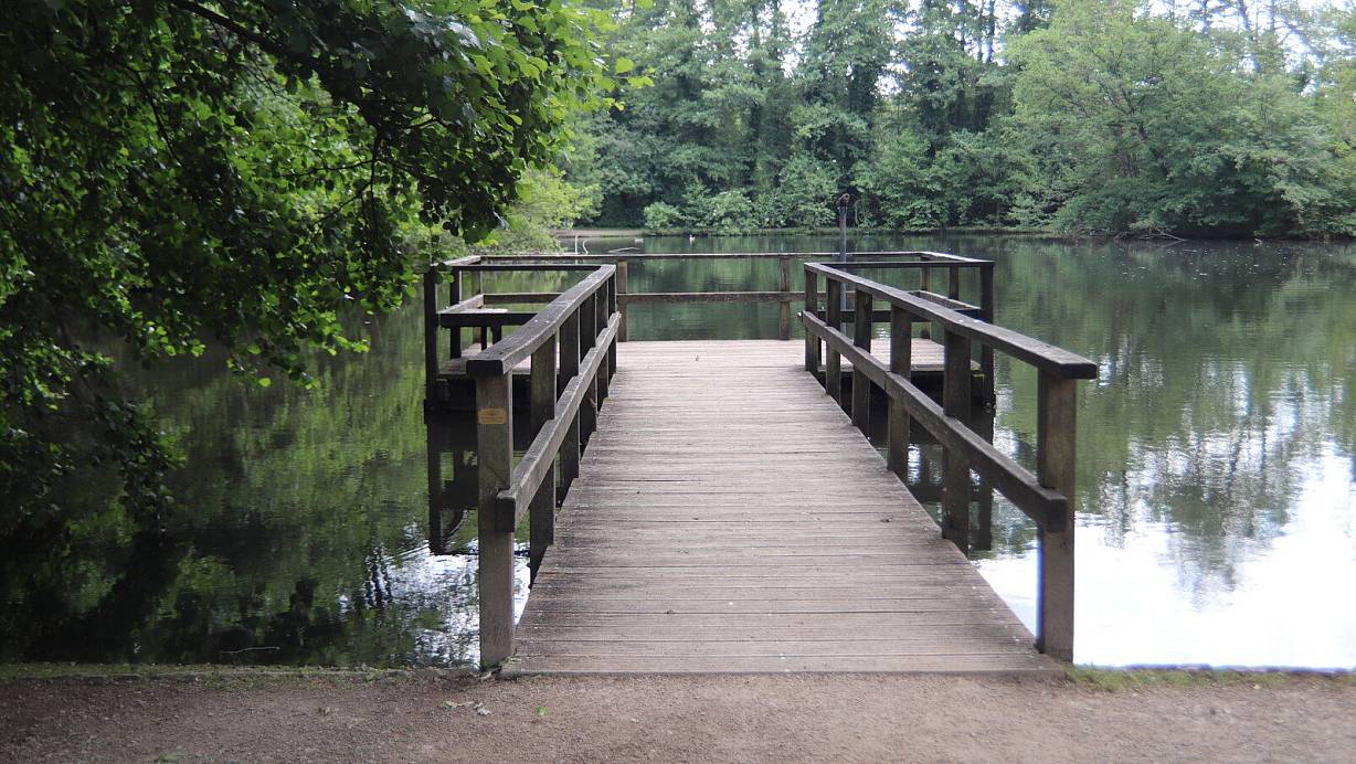Ein Steg an den Sammelteichen in Schloß Holte. Dort spielte sich das Verbrechen ab, das jetzt vor Landgericht Bielefeld verhandelt wird. | © FIONA DYCK