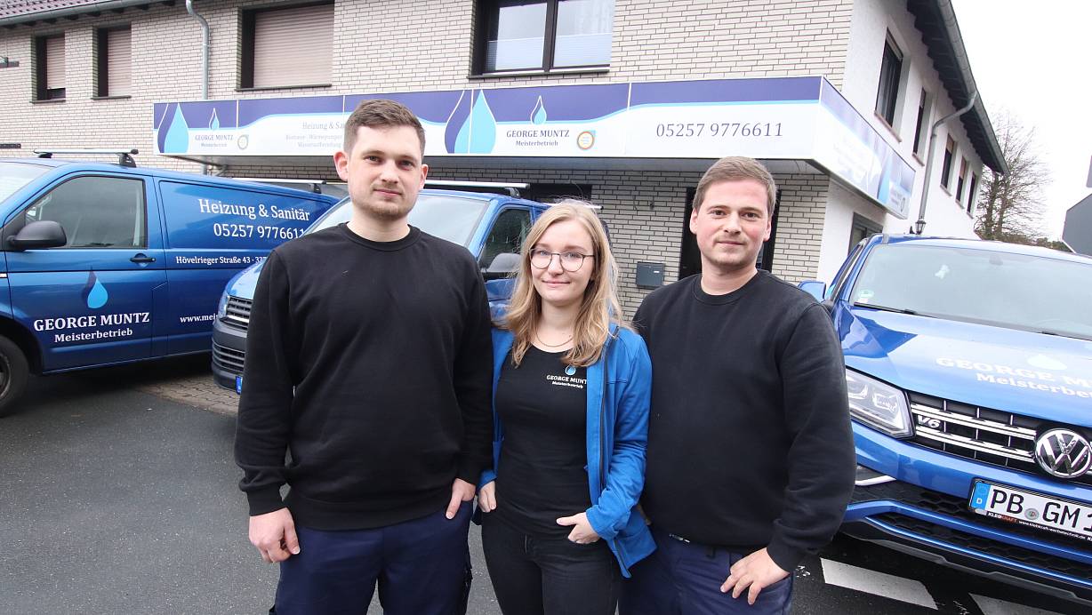 Philip Muntz (v.l.), Michelle Rempe, George Muntz sind auf Holz-Heizsysteme spezialisiert. Bald wollen sie ihre Ausstellung eröffnen. | © Sigurd Gringel