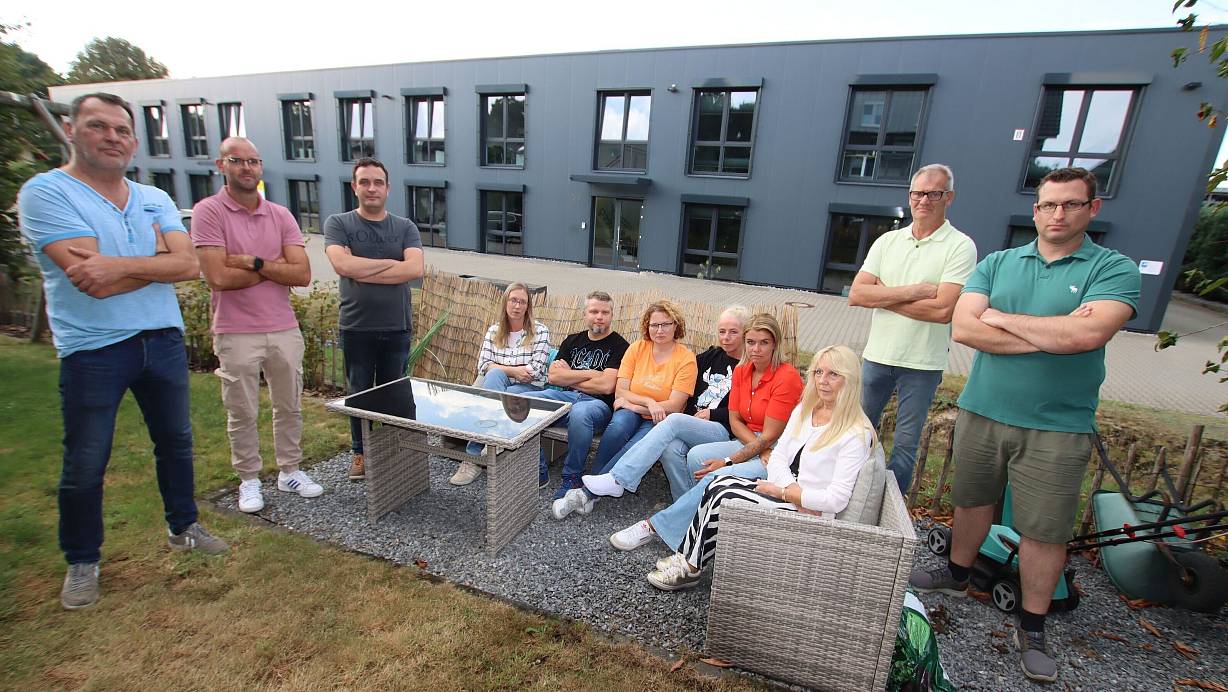 Direkt neben dem Garten liegt die Produktionshalle. Das Unternehmen Sartorius Xell will seinen Standort ausbauen und unter anderem einen Turm errichten, der 21 Meter emporragen soll. Das jetzige Gebäude ist sechs Meter hoch. | © Sigurd Gringel