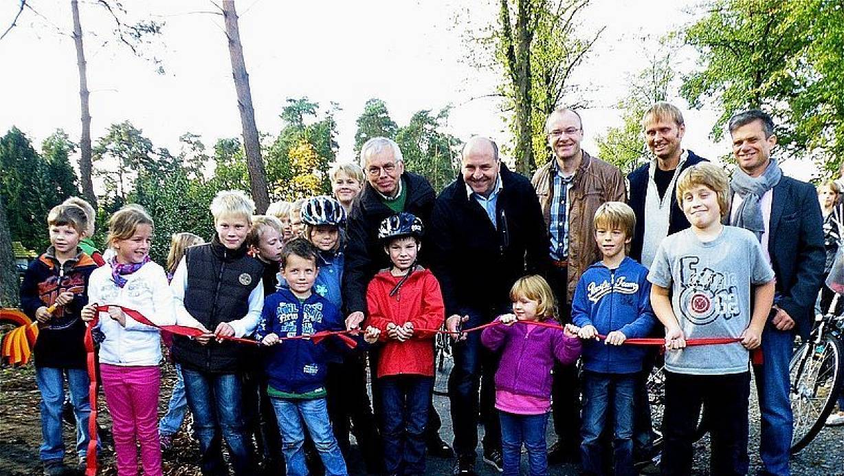 Im Anschluss an die offizielle Eröffnung versammeln sich die ehrenamtlichen Helfer und Anwohner auf dem Hof von Klaus Schniedermann für ein gemütliches Beisammensein bei Würstchen, Pommes und Getränken. Aber "jetzt wird geradelt", sagt Brummelte vorher und schwingt sich – wie so viele andere – für eine kleine Radtour entlang der Hövelrieger Straße auf sein Fahrrad.