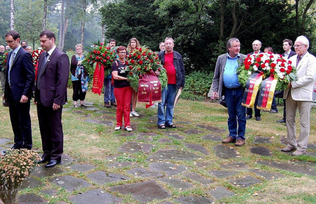Hubert Kniesburges, Vorsitzender des Arbeitskreises, gedachte nach der Kranzniederlegung der 65.000 Rotarmisten, die in dem größten in Deutschland eingerichteten Lager für sowjetische Soldaten zu Tode gequält wurden. Er erinnerte an Georgi Kholny, einen ehemaligen Kriegsgefangenen in Stukenbrock, dem "die Versöhnung zwischen Deutschen und Russen eine Herzensangelegenheit" war und im Juli im Alter von 92 Jahren in Moskau starb. Schwabedissen dankte den Vertretern der "Völker der Sowjetunion", die zu der Feier gekommen waren. "Sie sind ein leuchtendes Zeichen dafür, dass sich Feindschaft in Freundschaft verwandeln kann."