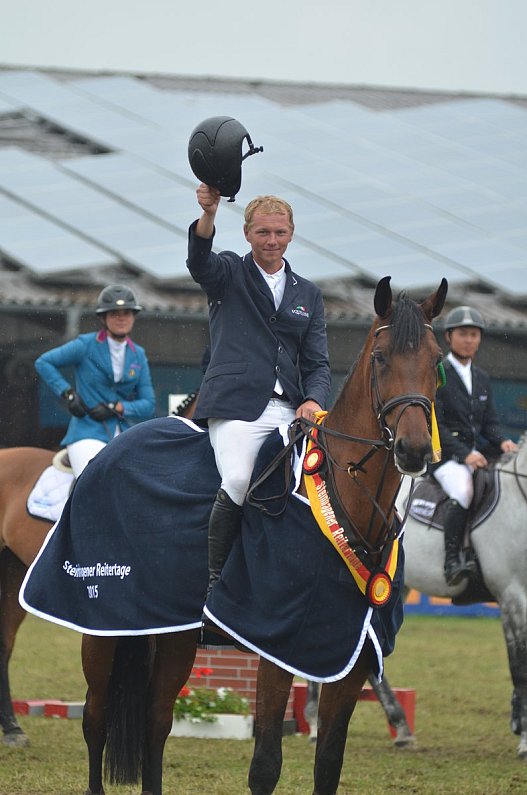 Zehn Paare konnten sich am Ende für das Stechen im Großen Preis qualifizieren, darunter auch der Steinhagener Tim Rieskamp-Goedeking. Im Stechparcours fiel jedoch eine Stange zu Boden und katapultierte den Lokalmatadoren aus dem Rennen. In einer Traumzeit von 44,68 Sekunden durchritt Bastian Freese den Parcours – und das fehlerfrei. Seine Zeit wurde zwar von Jürgen Senfert, Felix Haßmann und Holger Wenz unterboten, allerdings schafften die drei das Stechen eben nicht ganz ohne Fehler.