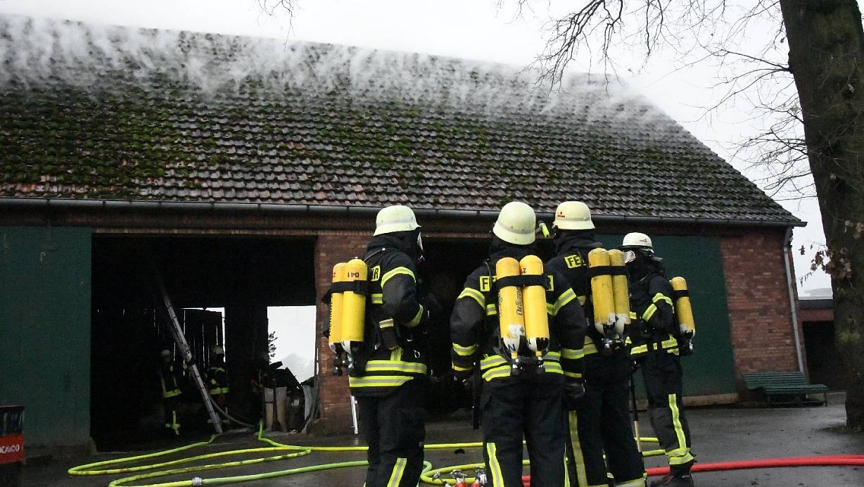 Steinhagen. Großeinsatz der Feuerwehr an der Ströher Straße am Vormittag des 2. Weihnachtsfeiertages: Vermutlich nach einem Defekt an der Heizungsanlage waren Heu- und Stroh im Bereich des Schornsteins einer Scheune in Brand geraten - um 10.50 Uhr wurde die Feuerwehr alarmiert. „Wir sind mit allen drei Löschzügen des Stadtverbandes hier, insgesamt rund 50 Kameraden", berichtete Feuerwehrchef Lutz Mescher.