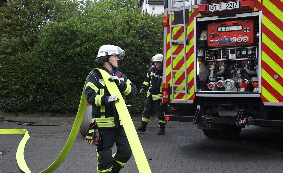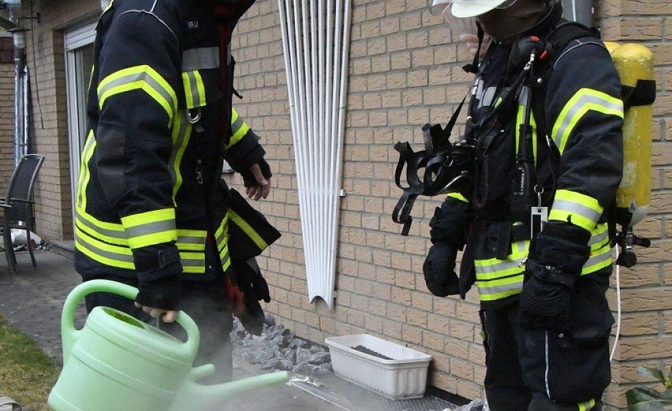 Unter Leitung von Jens Vahle hatten sich zwei Feuerwehrleute mit Atemschutzgeräten ausgerüstet, mit dem Wasser aus einer Kübelspritze zum Feuerlöschen konnten sie die aufgeheizte Situation im Keller abkühlen. Durch das umsichtige Vorgehen entstand auch kein Wasserschaden in der Doppelhaushälfte.