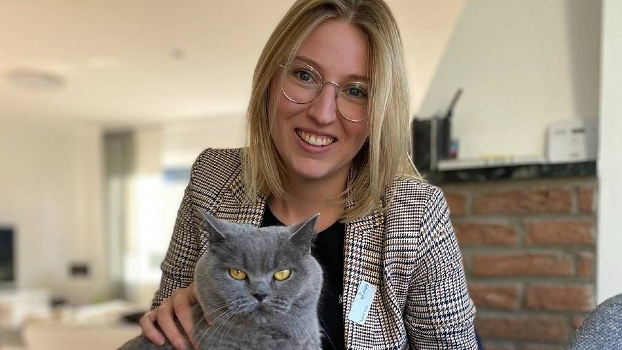 Bürgermeisterin Sarah Süß mit Katze Molly, die bei der Homestory unbedingt dabei sein wollte.  | © Frank Jasper