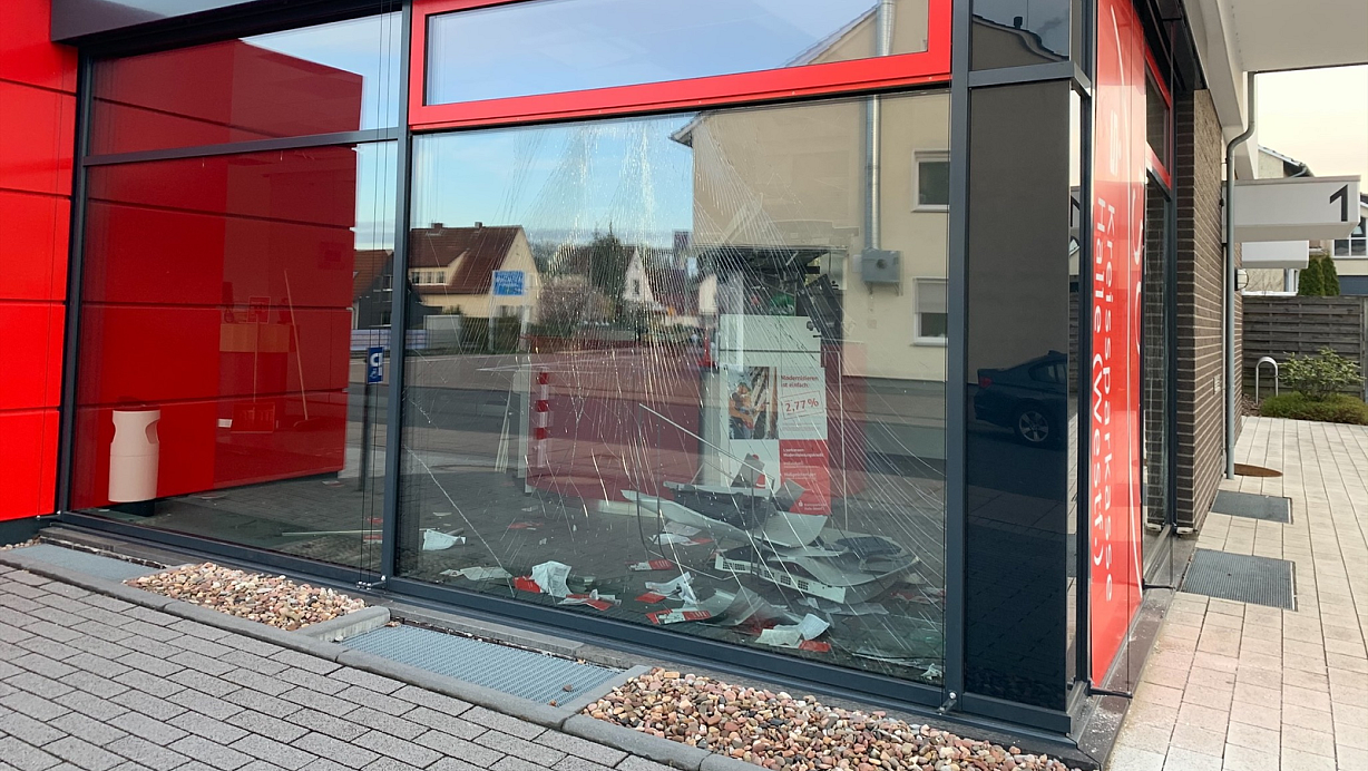 Eine gewaltige Detonation riss die Anwohner gegen 1.40 Uhr aus dem Schlaf. Nachdem sie die Ursache erkannt hatten, alarmierten sie Polizei und Feuerwehr. Der oder die Täter müssen sich gewaltsam Zutritt zu dem Vorraum verschafft haben.