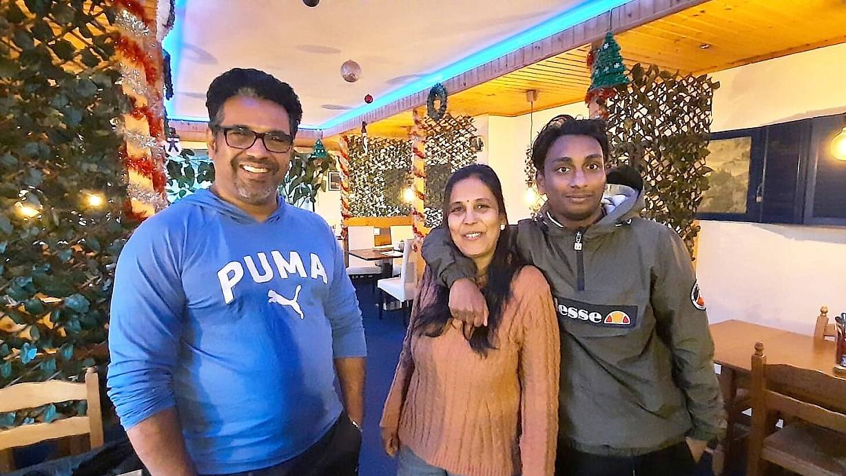 Ahilan Rajaratnam (v.l.), Chefin Kayathiri Uthrakumar und ihr Sohn Sinthujan laden in "Kaya's Kitchen" ein. | © Jonas Damme