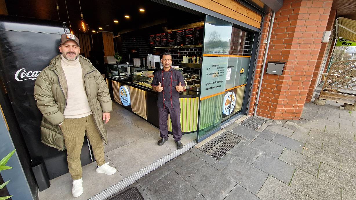 Ferdi Yildirim (l.) und sein Koch Lovepreet Singh freuen sich auf Gäste im neuen Imbiss "Kintaro Sushi". | © Uwe Pollmeier
