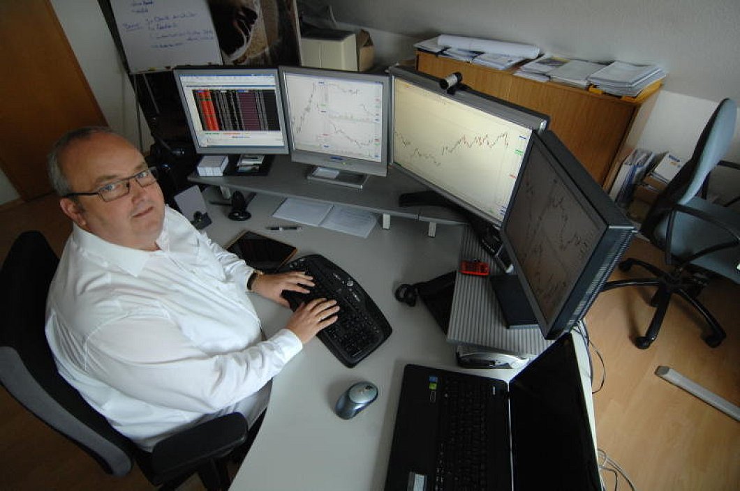 "Die Meisterschaft findet an einer fiktiven – nicht an der echten Börse statt", erklärt Lüddemann. Dennoch sind die Strategien, die ein erfolgreicher Trader (englisch, Händler) verfolgen sollte, dieselben. Dass der Aktienhandel eine Menge mit Psychologie zu tun hat, weiß der 48-Jährige aus eigener Erfahrung. Ein Bandscheibenvorfall zwang den damaligen fest angestellten Versicherungsagenten 1998 zu einer beruflichen Pause. "Ich hatte auch davor schon immer ein paar Aktien", erzählt er. Da er aber plötzlich Zeit hatte und sonst nicht viel machen konnte, habe er seine Aktieninvestments intensiviert und schnell festgestellt, dass seine Einkünfte sein normales Gehalt überstiegen. "Ich habe mich dann entschieden, nur noch als Trader tätig zu sein und meinen Job gekündigt."