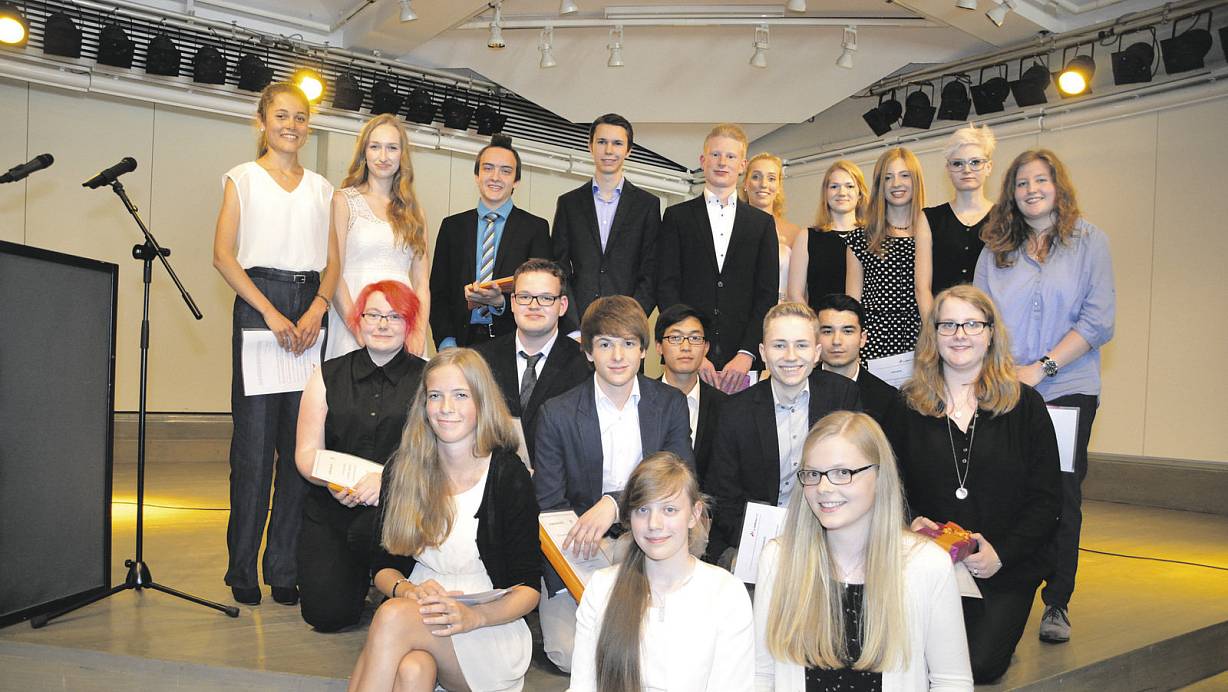 Ausgezeichnet: Mit Abi-Bestnoten und herausragenden Leistungen in verschiedenen Fächern haben eine ganze Reihe von Entlassschülern des Gymnasiums überzeugt. Ganz vorne sind Sara Krings und Marleen Meierfrankenfeld (v. l.) zu sehen, hinter ihnen die anderen erfolgreichen Abiturienten. | © Karin Prignitz