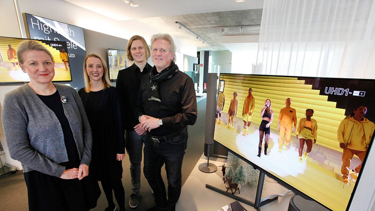 In der neuen Loewe-Galerie: Marlies Hillen (v. l.), Ina Hillen-Merkert, Jan und Michael Beckhoff vergrößern ihr Verler Geschäft anlässlich des 65-jährigen Bestehens, das Ende Oktober kommenden Jahres gefeiert wird, und investieren einen Millionenbetrag. | © Roland Thöring