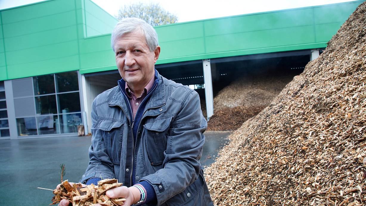 Pappel, Tanne und Fichte, manchmal Weide: Der technische Betriebsleiter Winfried Egbringhoff zeigt, was im Heizwerk neben dem Freibad zu Fernwärme wird. | © Roland Thöring