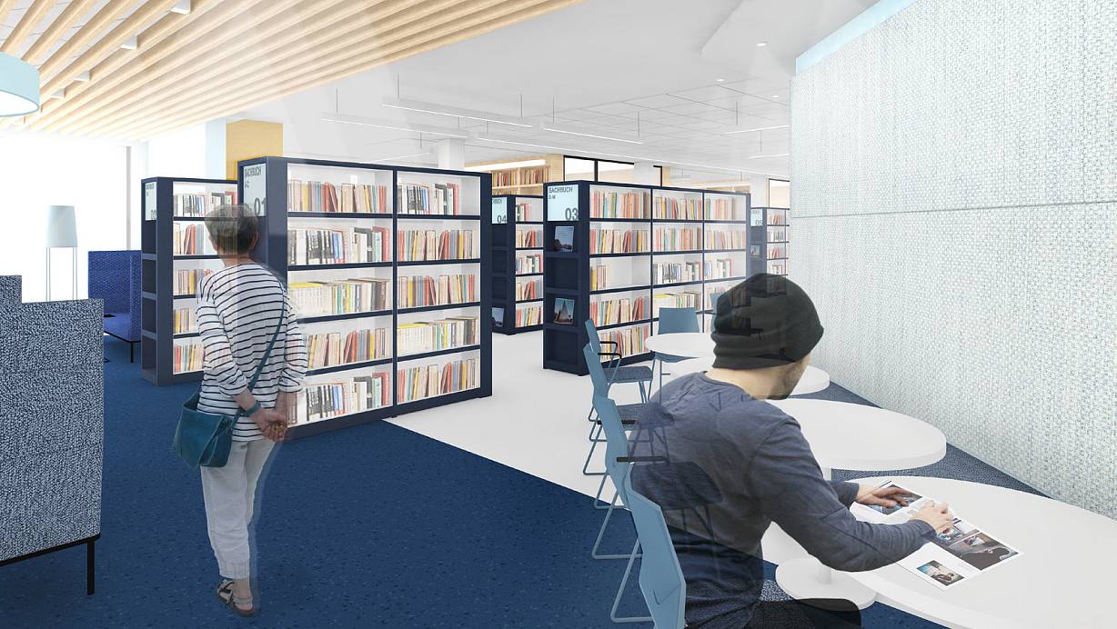 Die Bibliothek wird zum Treffpunkt. Sie soll den Besuchern mehr Freiräume bieten und für eine andere Mediennutzung offen sein. Der Umbau mit schickem Ambiente wird rund 1,6 Millionen Euro kosten.