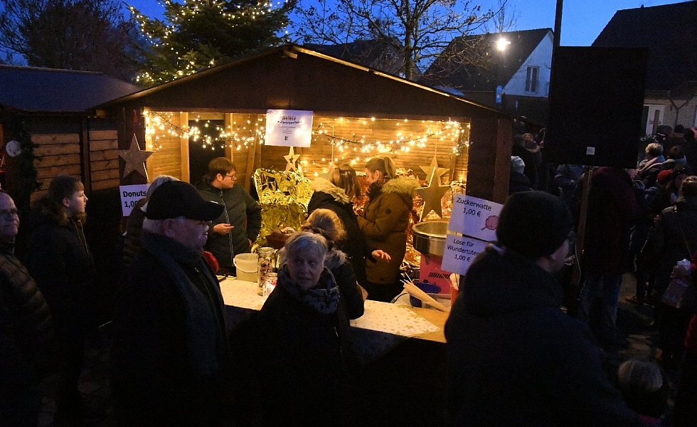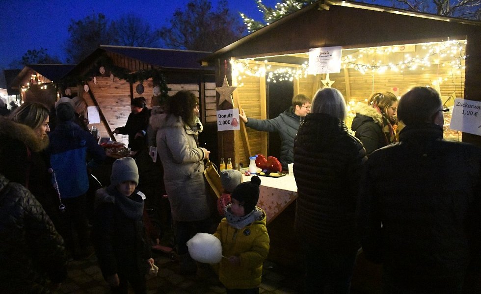 Rund um den Bürgertreff an der Posener Straße war wieder ein gemütliches, kleines Hüttendorf aufgebaut worden. Die Stände hatten für jeden etwas: Zuckerwatte bot die St.-Georg-Kindertagesstätte, Überraschungspäckchen gab es bei der St. Judas Thaddäus-Kirchengemeinde. Frische Waffeln und Kaffee oder heißen Apfelsaft, selbst gebastelte Präsente der unterschiedlichen Klassen bot der Stand des Fördervereins „Eltern Aktiv" der Grundschule Sürenheide an.
