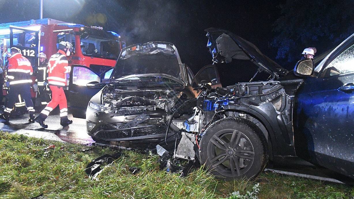 Verl. Vier Verletzte und einen toten Hirsch forderte am Samstagabend gegen 20.40 Uhr ein schwerer Unfall auf der Paderborner Straße in Verl. Ein BMW X6 kollidierte zwischen Veilchen- und Baumweg mit dem Wildtier, geriet auf die Gegenfahrbahn und stieß 60 Meter weiter mit einem entgegenkommenden Honda Civic frontal zusammen.