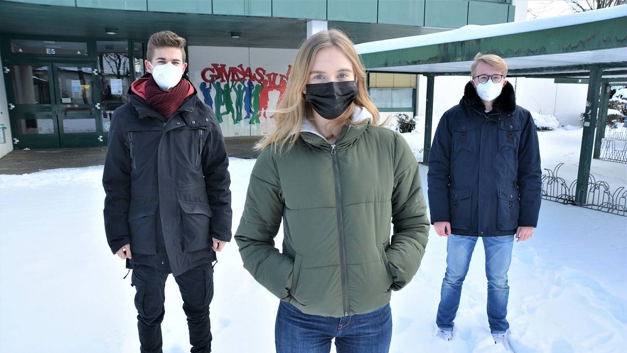 Niklas Weigand, Lea Menke und Tim-Louis Rüther (v. l.) gehören zu den 54 Abiturienten, die sich an dem Projekt beteiligen, um die Abikasse zu füllen. | © Karin Prignitz