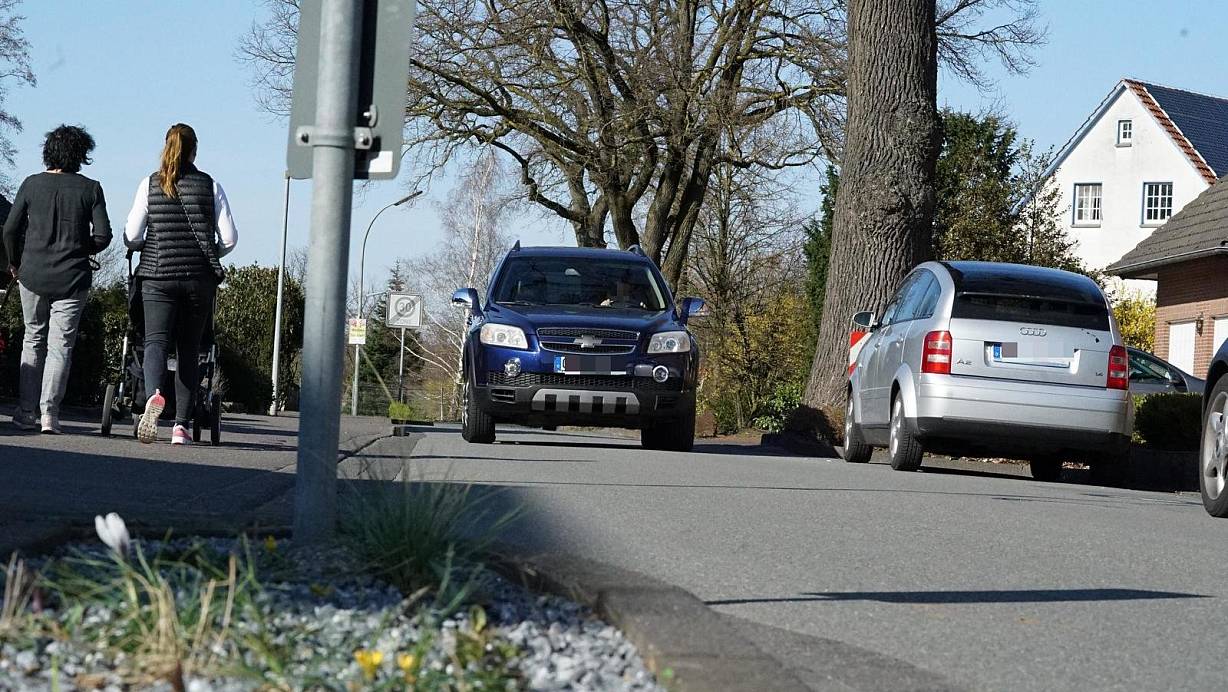 Gefahr für Fußgänger: An dieser Straße fahren Autos über den Bürgersteig
