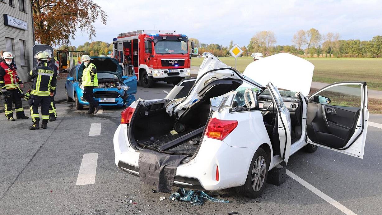 Die 53-Jährige hatte an der Österwieher Straße offenbar einer 27-jährigen Delbrückerin die Vorfahrt genommen. Die Verlerin kann sich nicht mehr selbst aus dem Auto befreien.
