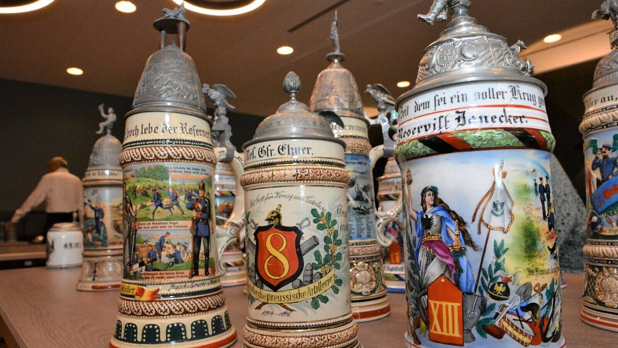 Bierkrüge-Sammler aus vielen Teilen Europas und Amerika treffen sich im Hotel „Wunners Wat“, um ihre Raritäten zu zeigen. Ein Schwabe hat sogar ein dickes Buch mit Abbildungen verfasst.