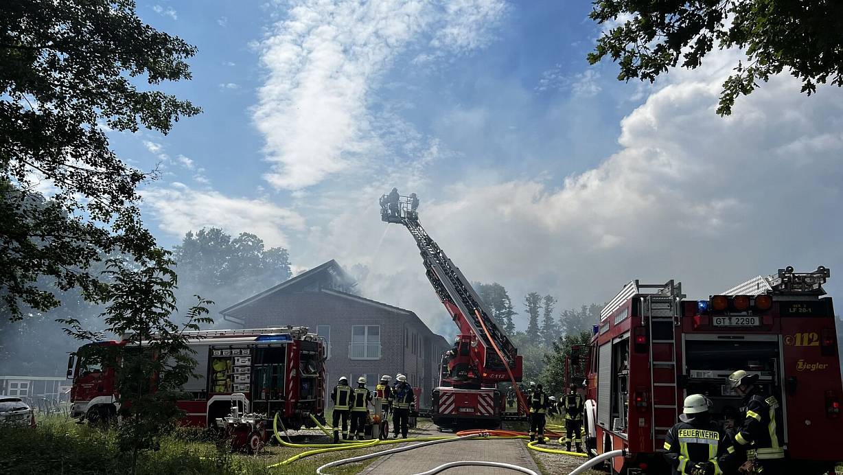Das Feuer war gegen 14 Uhr in Verl ausgebrochen - warum ist derzeit noch unklar. Einsatzkräfte waren bis zum Abend vor Ort. Kurzzeitig fehlt es an Löschwasser.