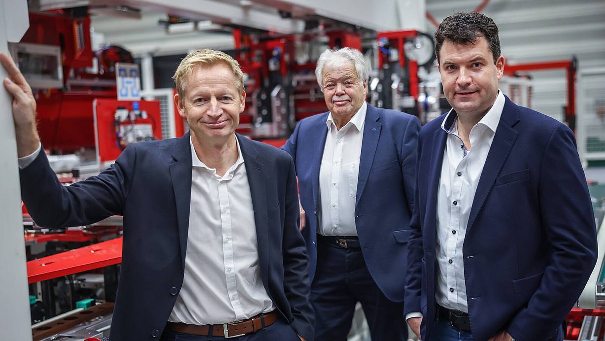 Ausrichtung für die Zukunft: Norbert und Daniel Hüttenhölscher (r.) sind stolz Rolf Beckhoff (l.) für die Geschäftsführung gewonnen zu haben. | © Sarah Jonek Fotografie