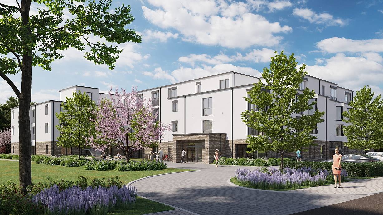 Gut 80 neue Arbeitsplätze entstehen in der neuen Seniorenresidenz an der Königsberger Straße in Sürenheide im Kreis Gütersloh. | © Visualisierung: Arne von Hörsten