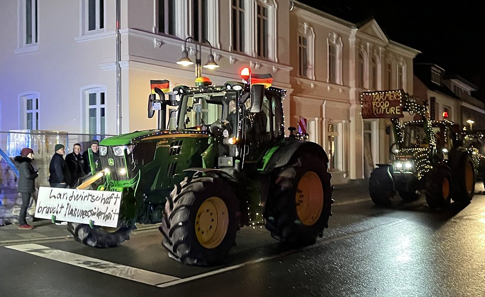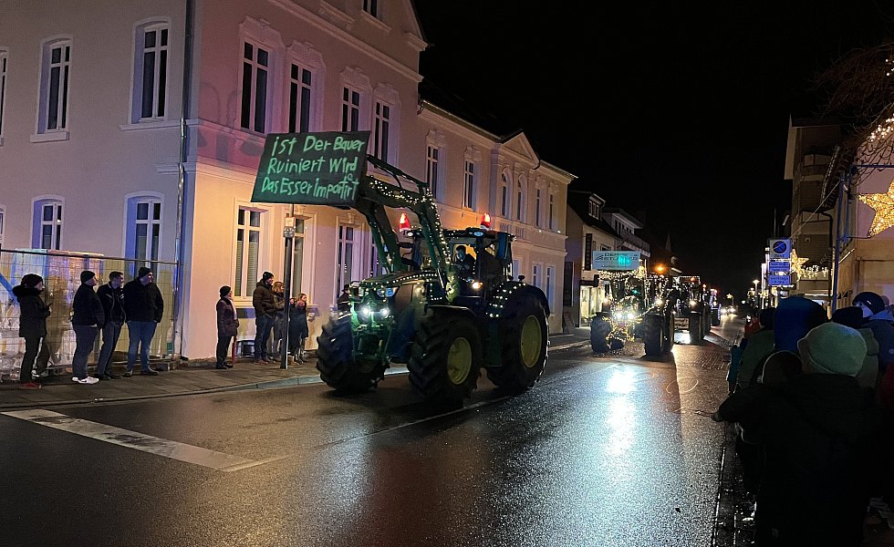 Andreas Westermeyer ist begeistert von dem hohen Interesse der Bevölkerung. „Unglaublich viele Kinder habe ich an der Strecke, aber auch an der Schützenhalle und am Endpunkt in Kaunitz gesehen.“ Dabei ist die politische Botschaften nicht zu kurz gekommen. Die Plakate, die fast alle aufwendig geschmückten Fahrzeuge, ob riesiger Schlepper oder historischer Kleintrecker, mit sich führten, seien wahrgenommen worden, weiß Westermeyer.
