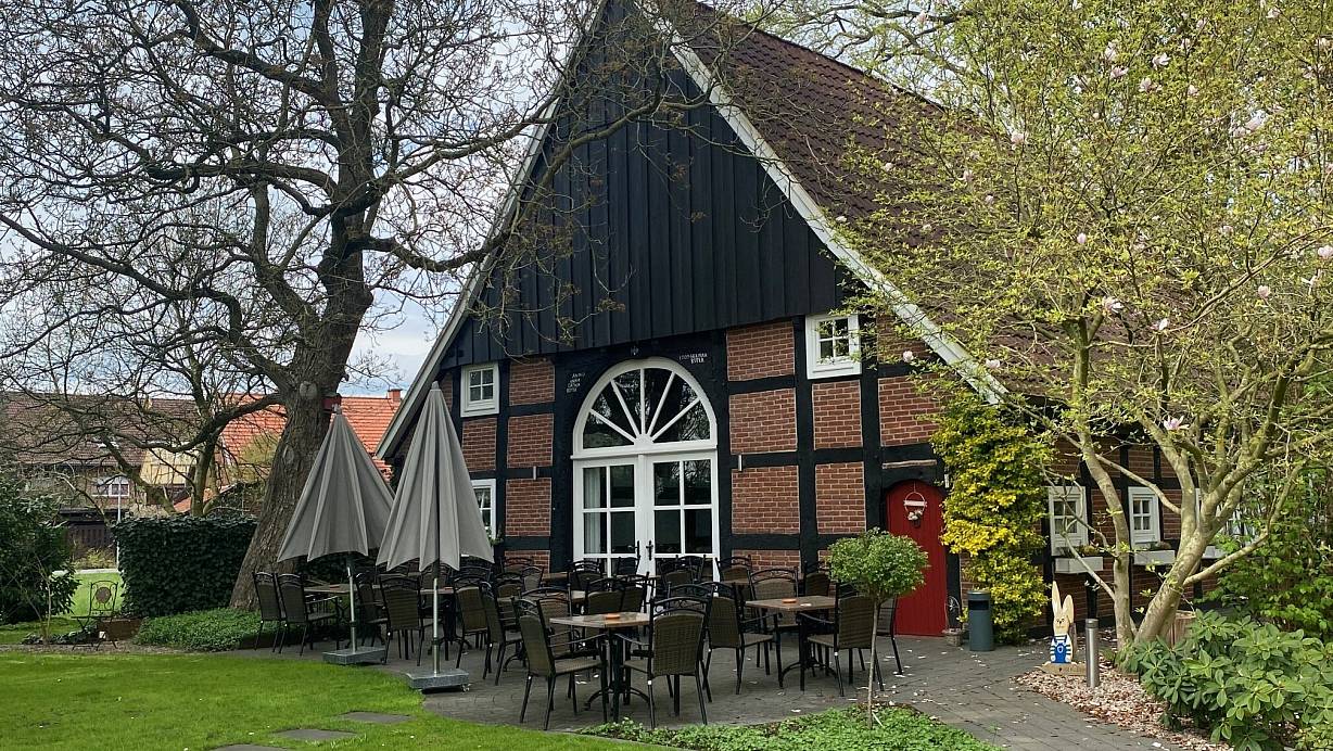 Das im Jahr 1649 erstmals erwähnte Kötterhaus steht idyllisch unter uralten Eichen. Der weitläufige gepflegte Biergarten ist im Sommer nicht nur bei Radfahrern und Wanderern beliebt. | © Markus Voss