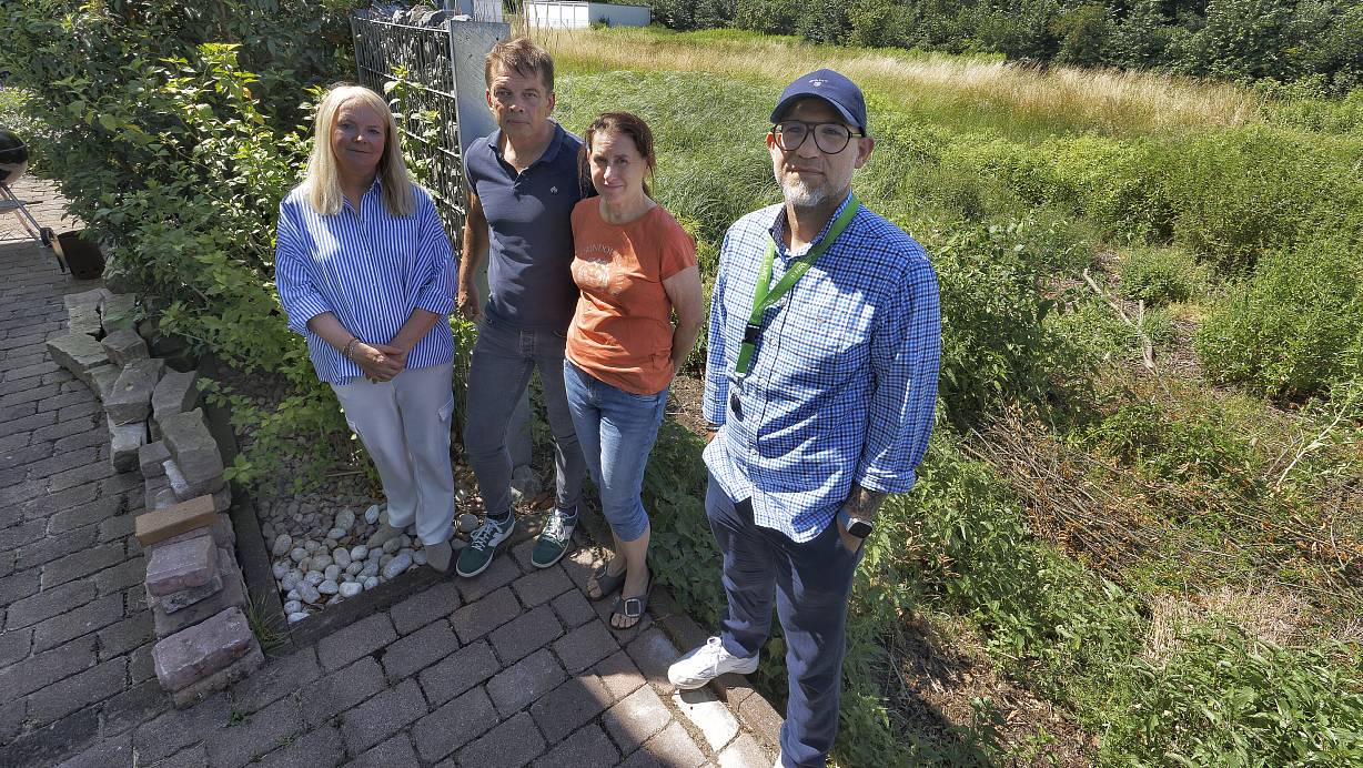 Die Anwohner Sylvia Ottofrickenstein, Thomas und Anne Tenzler sowie Oguz Koçak (v. l.) wehren sich gegen den geplanten Neubau vor ihrer Haustür. | © Roland Thöring
