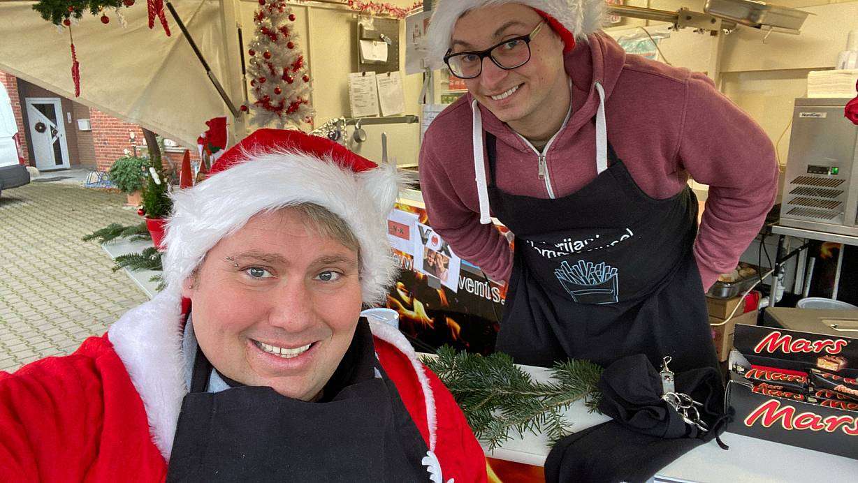 Sven und Sebi Florijan an ihrer Pommes-Insel in Aschendorf. Die "Goodbye Deutschland"-Auswanderer bauen sich gerade in Versmolds Nachbarschaft eine neue Existenz auf. Die Sehnsucht nach Mallorca ist dennoch groß. | © Privat