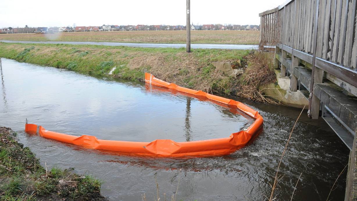 Der Versmolder Aabach ist mit Altöl belastet. Die Feuerwehr versucht an insgesamt acht Stellen, eine Verunreinigung mit Sperren einzudämmen. | © Marc Uthmann