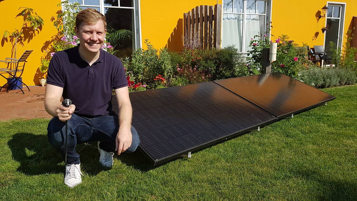 Lukas Hoffmeier hat im August 2020 seinen Job gekündigt und vertreibt seitdem gemeinsam mit seinem Bruder und einem weiteren Geschäftspartner Mini-Solaranlage für Balkon und Garten. | © Uwe Pollmeier