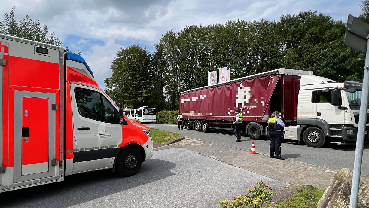Schwerer Unfall im Kreis Gütersloh: Lkw-Fahrer wird von Schulbus mitgeschleift
