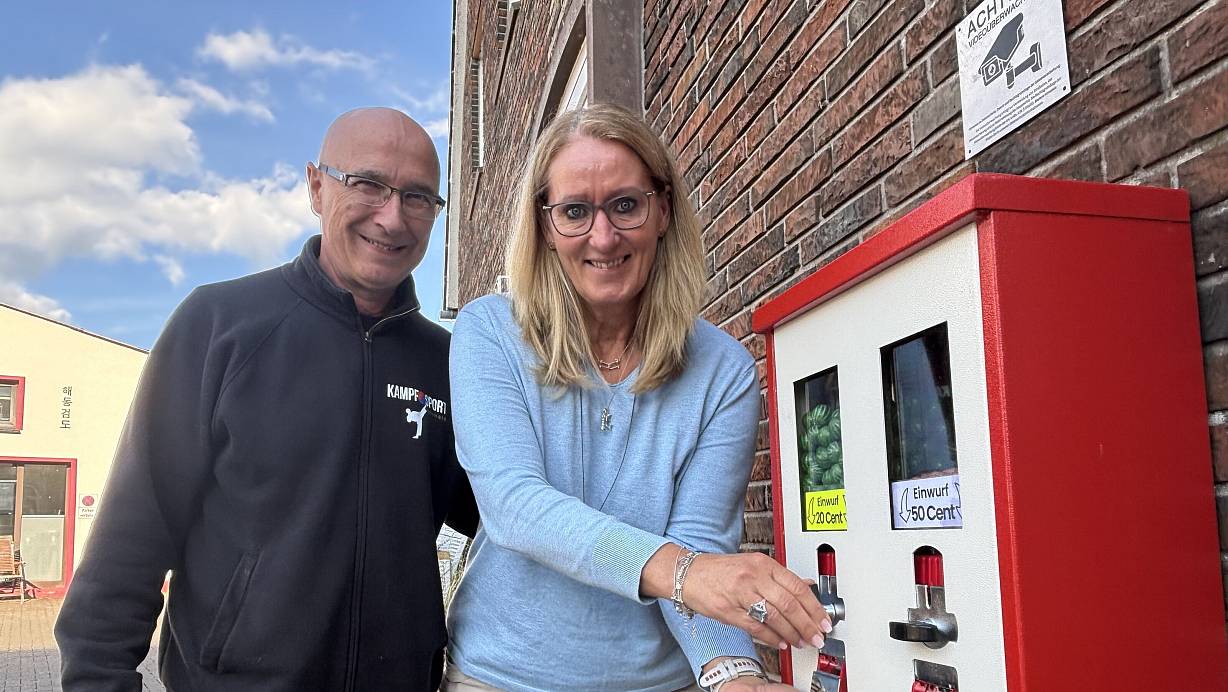 Claudia und Frank Unzicker sind seit kurzem stolze Besitzer eines Kaugummi-Automaten. Damit holen sie ein Stück Kindheit zurück in den Kreis Gütersloh zurück. | © Tasja Klusmeyer