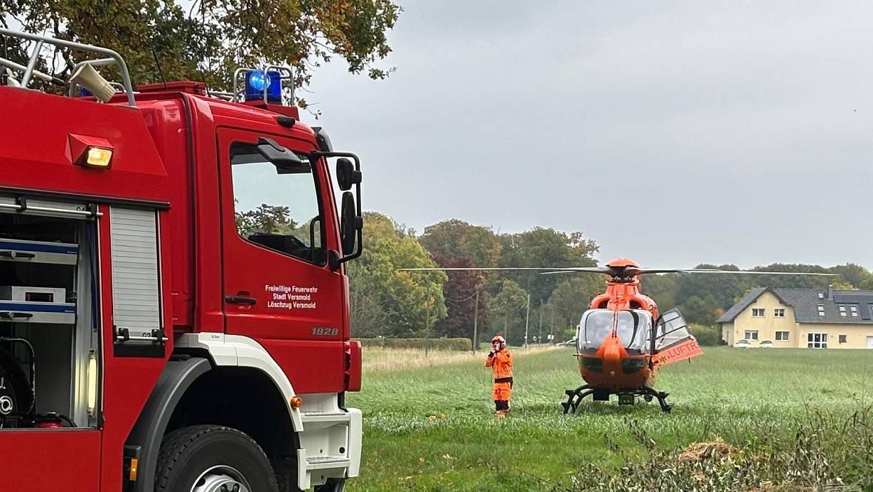 Die Feuerwehr muss am Sonntag zu einem Zimmerbrand im Kreis Gütersloh ausrücken. Ein Rettungshubschrauber bringt die schwer verletzte Frau ins Krankenhaus.