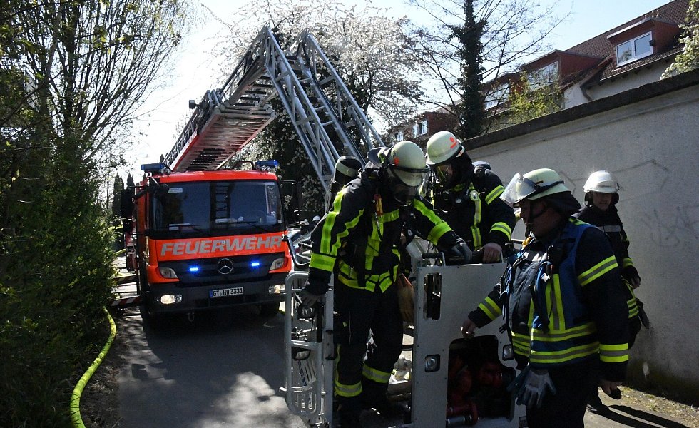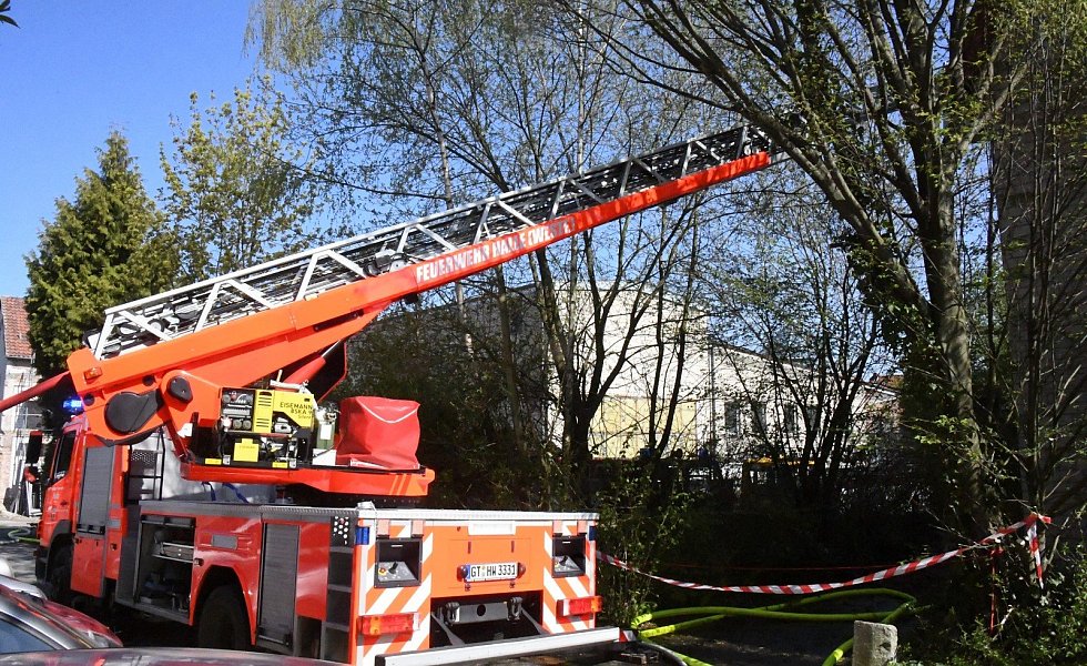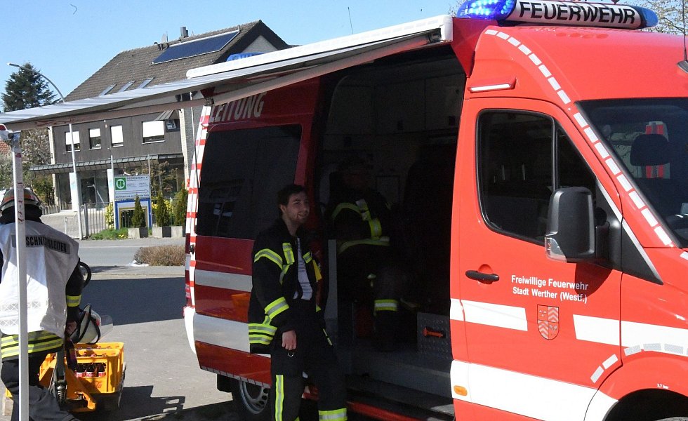 Werther. Mit rund 50 Einsatzkräften rückte die Wertheraner Feuerwehr am Ostersonntag zu einem Dachstuhlbrand an die Engerstraße aus. Den Einsatzkräften war kurz nach 11 Uhr ein Schwelbrand gemeldet worden, beim Öffnen der Dachhaut schlugen den Feuerwehrleuten Flammen entgegen. „Einige Bewohner des Mehrfamilienhauses kamen uns schon entgegen, andere mussten aus dem Haus geführt werden“, berichtete Jürgen Blomeier als Feuerwehr-Pressesprecher.