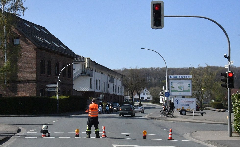 Die Engerstraße war während der Löscharbeiten voll gesperrt. Hier positionierten sich die Löschzüge Häger und Langenheide mit ihren Fahrzeugen, aufgrund der aktuellen Lage griffen sie aber nicht aktiv ein. Sie dienten Einsatzleiter Dirk Hollmann als Reserve. Nach gut drei Stunden war der Einsatz gegen 14 Uhr beendet.