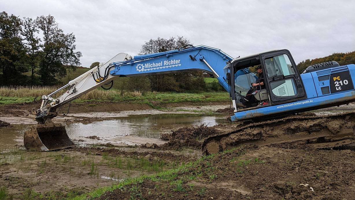 Langsam und vorsichtig bewegt Christian Albrecht seinen Bagger vorwärts. Sorge, er könnte im Matsch stecken bleiben, hat er allerdings nicht. | © Anja Hanneforth