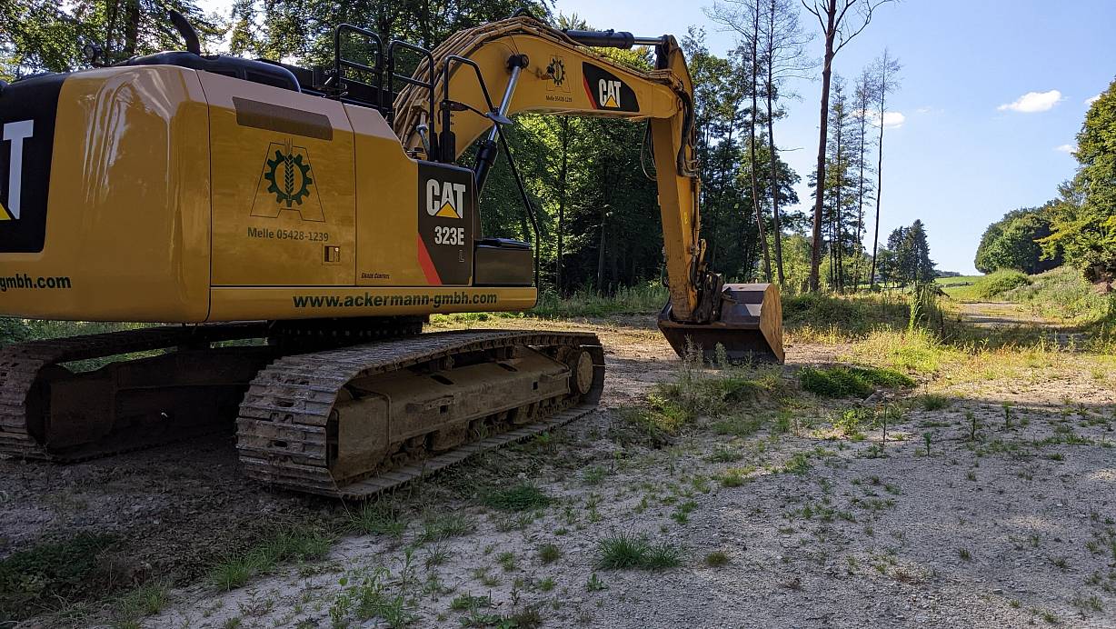 Die beiden Großzelte, die als Futterlager dienen sollten, sind inzwischen abgebaut worden. Außerdem steht ein Bagger bereit. Möglicherweise wird er demnächst die Fundamente und den Zuweg zum Lager entfernen. | © Anja Hanneforth
