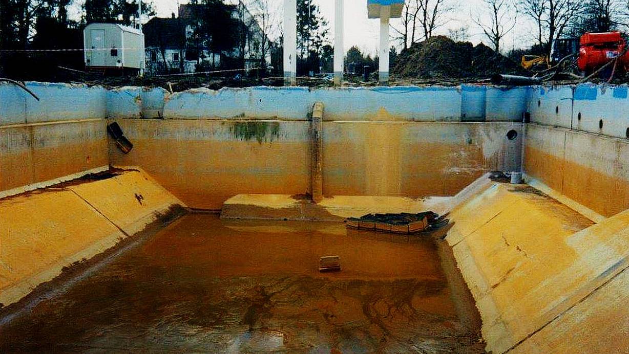 So sah es vor 23 Jahren unter der Beckenfolie in der Sprunggrube aus. Der Sprungturm darf unter anderem wegen der Unterschreitung von Mindestabständen nicht mehr genutzt werden. | © STADT BÜNDE