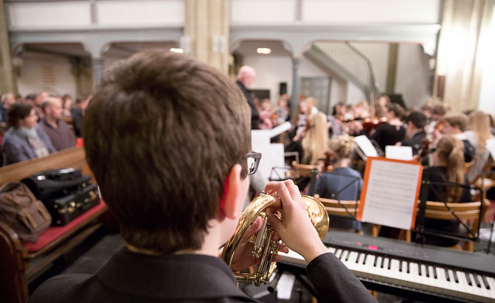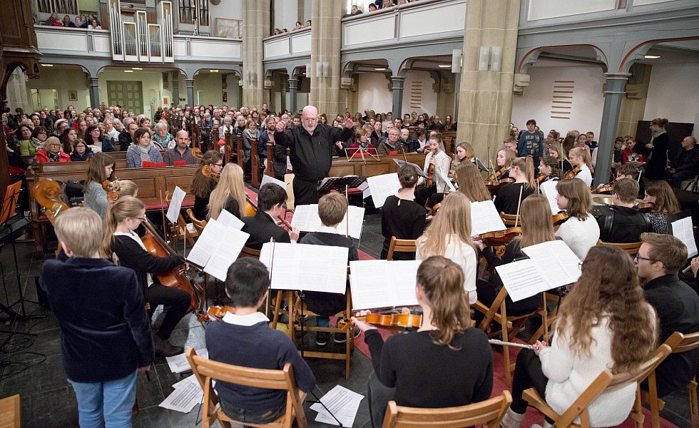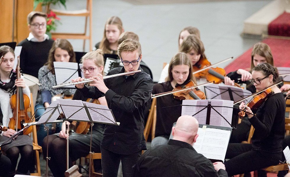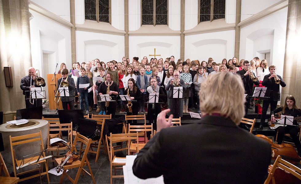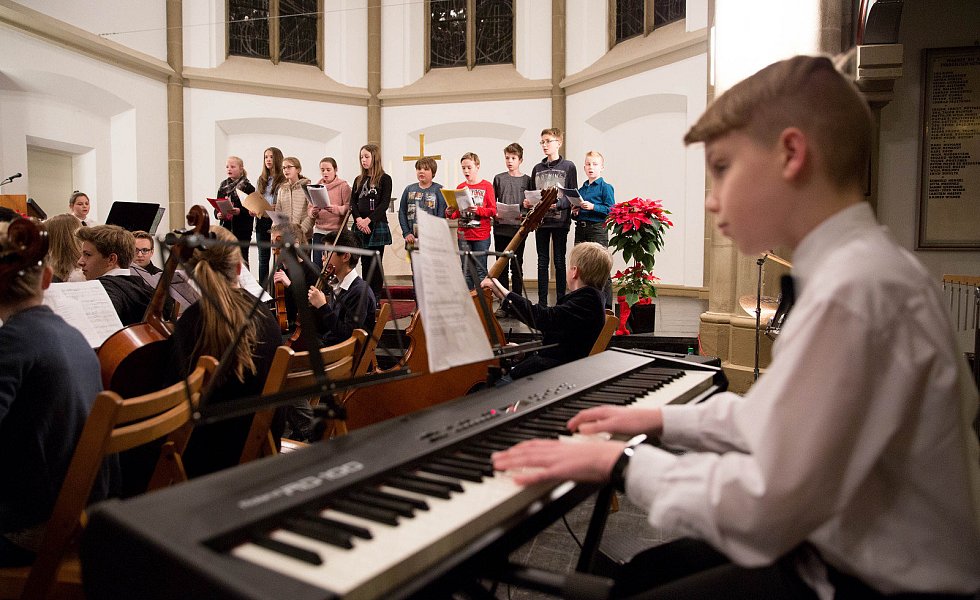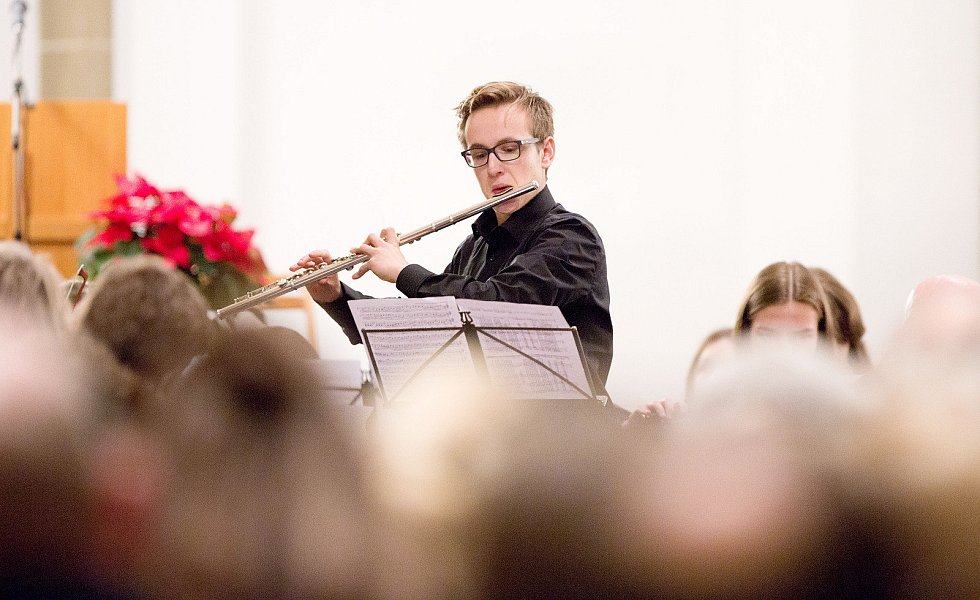 Sei es das Orchester der Sekundarstufe I mit beispielsweise einem Menuett aus der „Feuerwerksmusik" von Händel oder das Oberstufenorchester, welches mit Felix Weisemann und seiner Querflöte ebenso eine besinnliche und ruhige Stimmung ins Gotteshaus brachte.