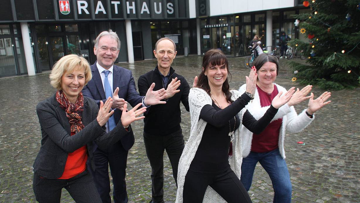 Im gleichen Takt: Da?a Minarikova, Wolfgang Koch, Pavel Minarik, Bettina Marks und Dorit Bethke, Gleichstellungsbeauftragte der Stadt Bünde | © Foto: Björn Kenter