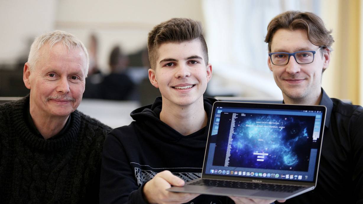 Auf dem Weg zu Jugend forscht: Thomas-Michael Braun (l.) betreut die Jugend-forscht-Teams seit vielen Jahren. Linus Schmidt brachte seinen Lehrer Kai Schneider zum Stutzen, als er ihm Fragen aus einem Bereich der Höheren Mathematik stellte. Für die Vorführung hat der Schüler eine schicke Bildschirmoberfläche programmiert. Foto: DUNKEL | © www.gerald-dunkel.de