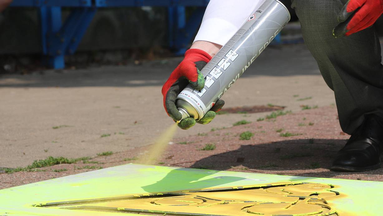 Polizei sprüht in Bünde Geister-Bilder gegen Geister-Radfahrer