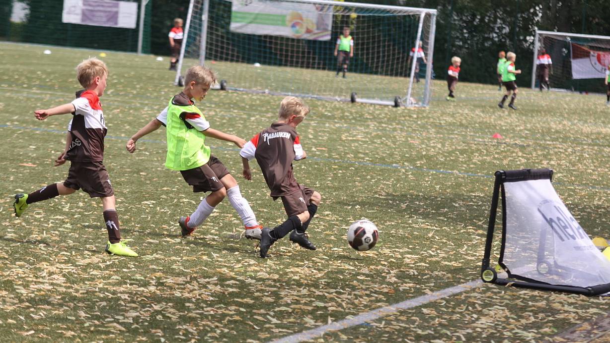 Treffer aus kurzer Distanz: Beim Abschluss-Turnier des Rabauken-Fußballcamps in Holsen wurde auf zwei Feldern nebeneinander Funino gespielt. Foto: Björn Kenter | © Björn Kenter