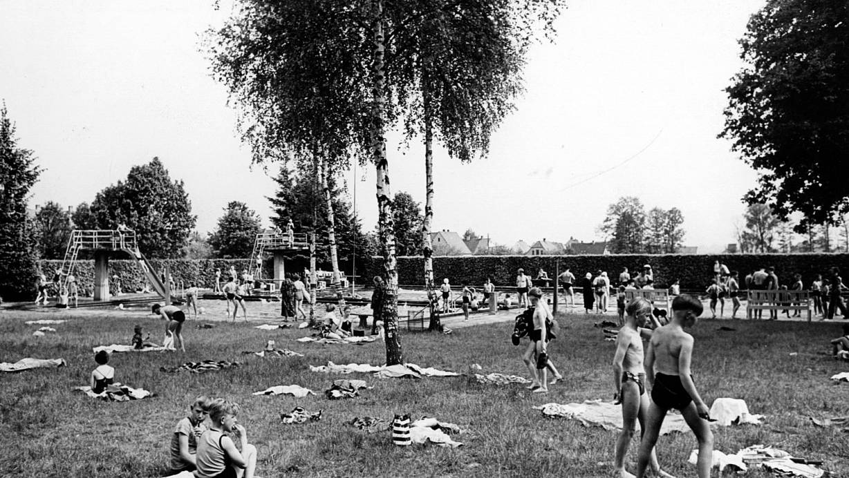 Die Freibäder (hier Ennigloh): Die Handtücher sind auf der Liegewiese ausgebreitet (1960er Jahre). | © Kommunalarchiv