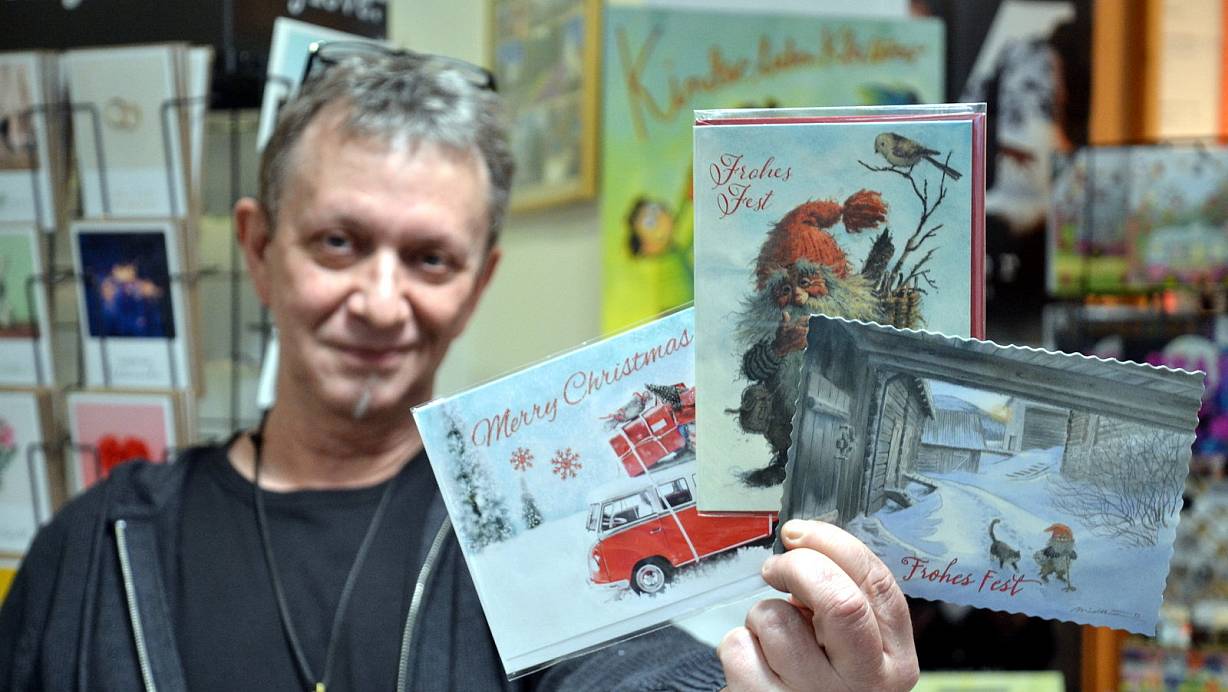 Thomas Senge von der Bünder Leseecke erzählt, dass gerne klassische Weihnachtskarten gekauft werden. | © Katharina Eisele