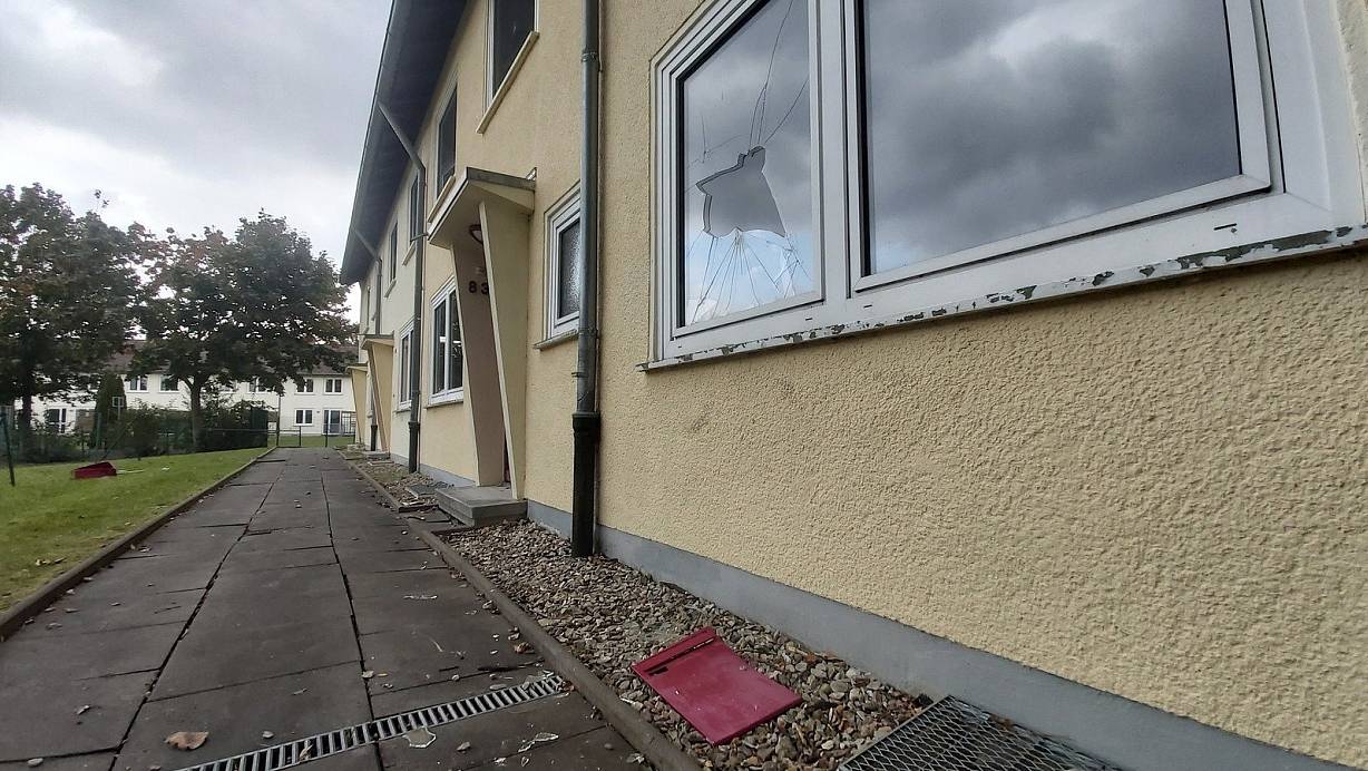 Unbekannte Täter haben eine Scheibe zerstört und Briefkästen von den Wänden gerissen. | © Florian Weyand