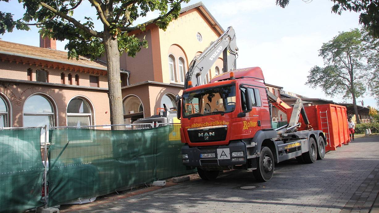 Auf der Baustelle am Bahnhof tut sich wieder etwas. Nach dem wochenlangen Baustopp hat ein Unternehmen aus Melle mit ersten Abrissarbeiten begonnen.